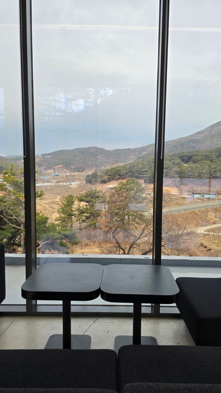 ✅ 뷰 맛집! 카페 내부에서 바라보는 청도의 자연경관이 너무 아름다워요.