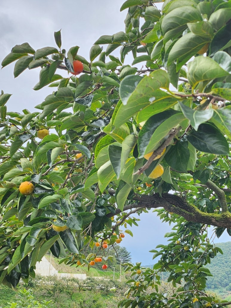 앞집 감나무가 주차장으로 넘어와 있어요.. 누가 주인이지? ㅎㅎ