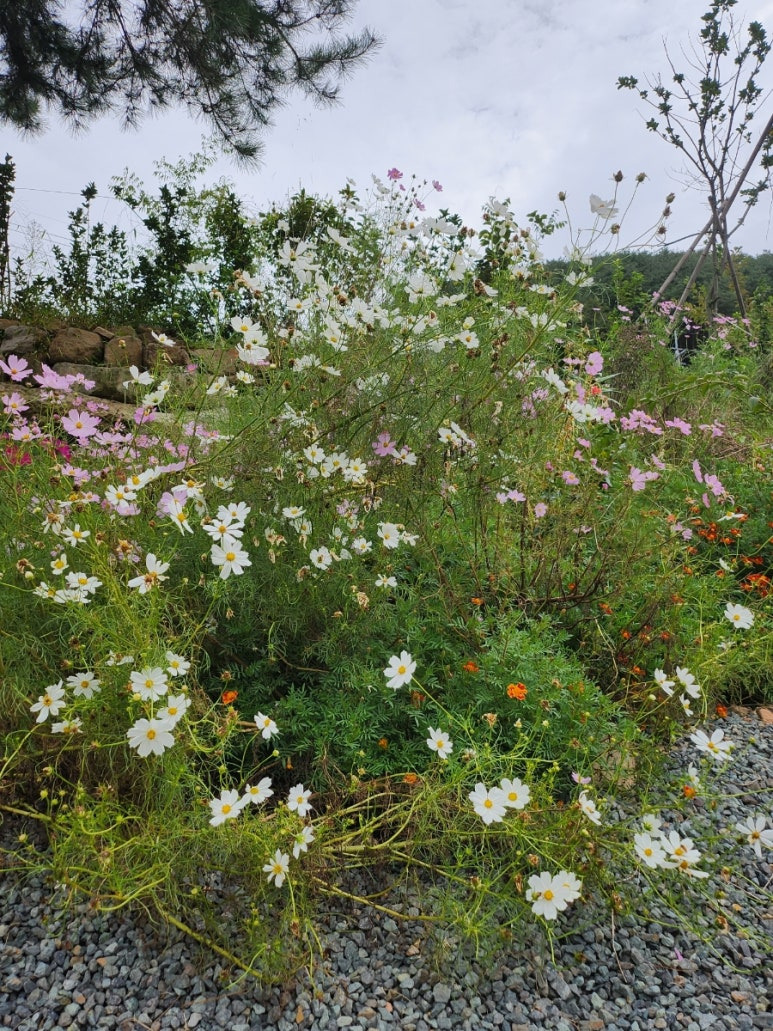 주차장에 코스모스가 너무 정겨워요 ~
