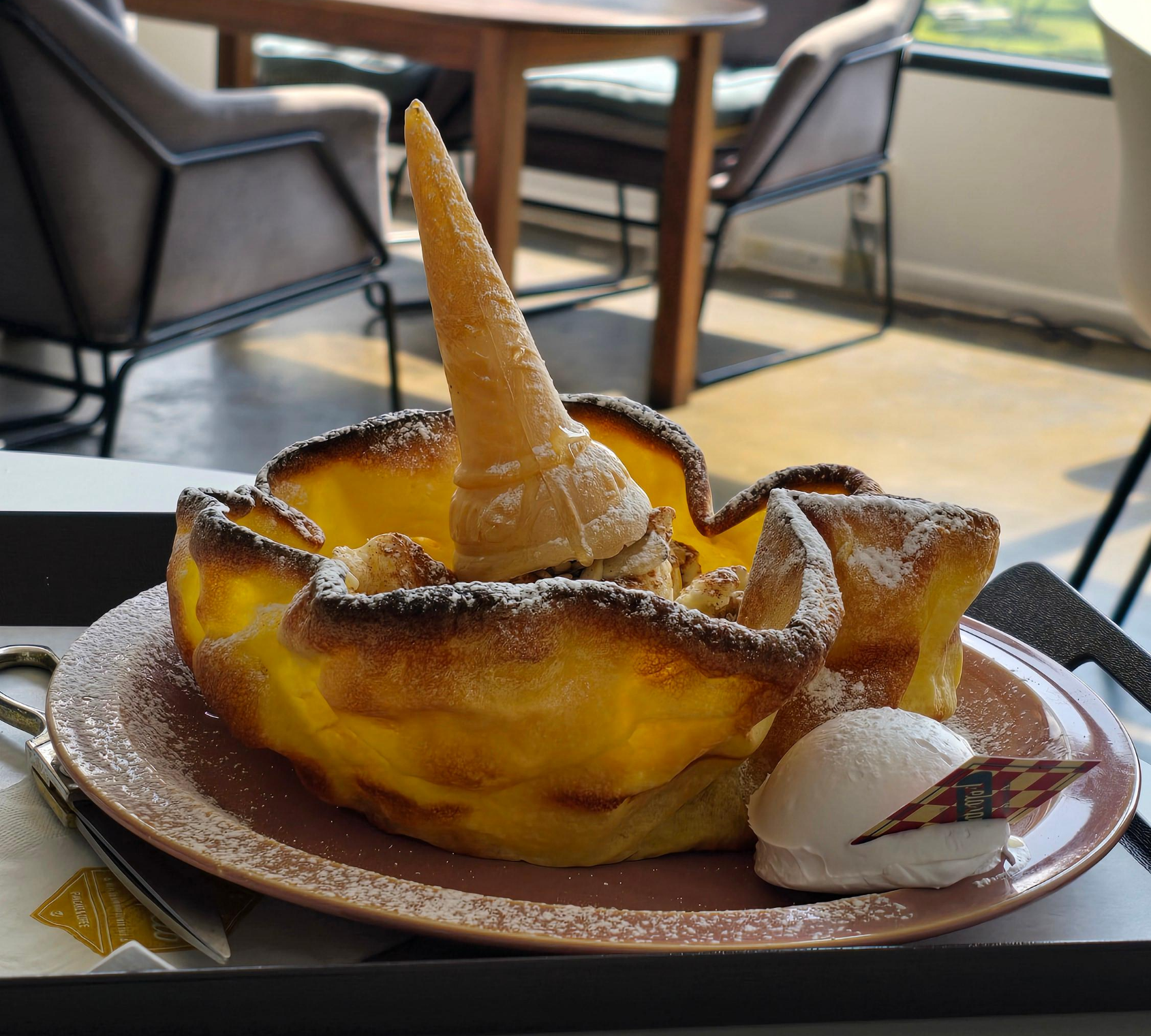 페로어페로의 가장 인기 있는 메뉴는 단연 쌀팬케이크입니다. 일반 밀가루 팬케이크보다 쫀득하고 고소한 맛이 특징인데요, 국내산 쌀을 사용해 글루텐에 민감한 분들도 부담 없이 즐길 수 있습니다. 위에는 버터와 메이플 시럽이 올라가 있고, 과일이나 크림치즈를 추가할 수도 있어요.