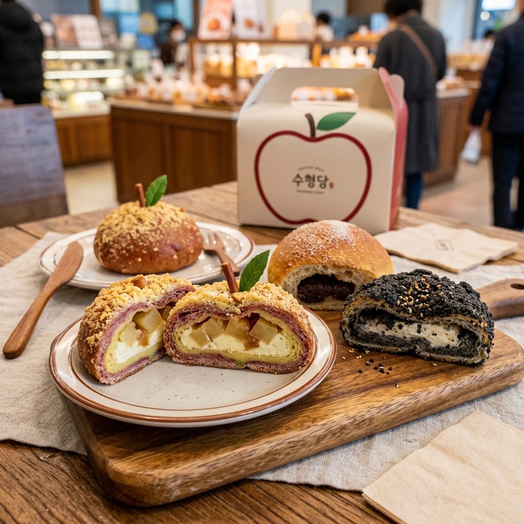 흑임자 크림치즈빵은 겉은 소보로처럼 바삭하고 안은 진한 흑임자와 크림치즈가 두 겹으로 들어 있어 고소함이 강했어요. 개인적으로는 동대구역사과빵이 비주얼과 재미, 흑임자 크림치즈빵이 맛으로는 1등이었어요. 그래도 결국 제일 먼저 사라진 건 사과빵이라, 다음에 다시 가면 선물용 세트는 전부 동대구역사과빵으로 채우고, 먹을 거만 다른 빵 섞어서 살 것 같네요.
