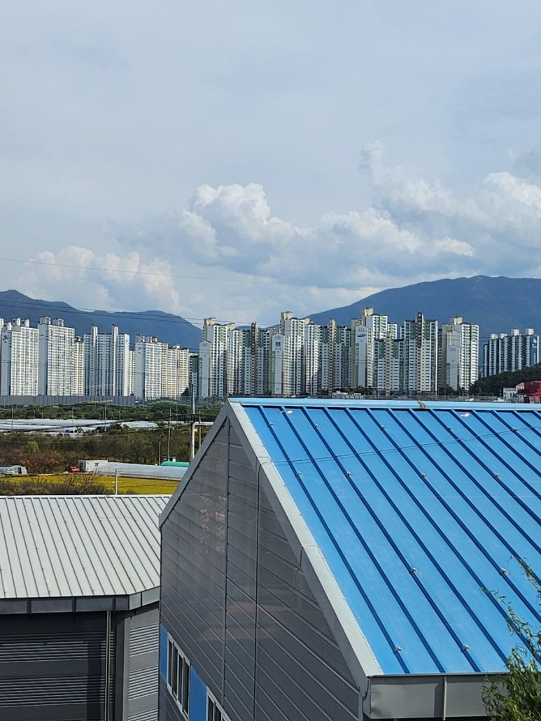 저 앞에 보이는 아파트 색.. 자주 보니 이젠 익숙하네요