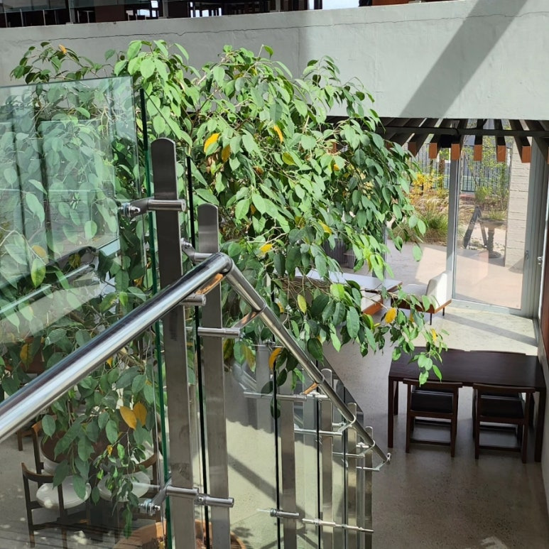 1층 내려가는 계단에 초록초록하게 꾸며져 있어요
