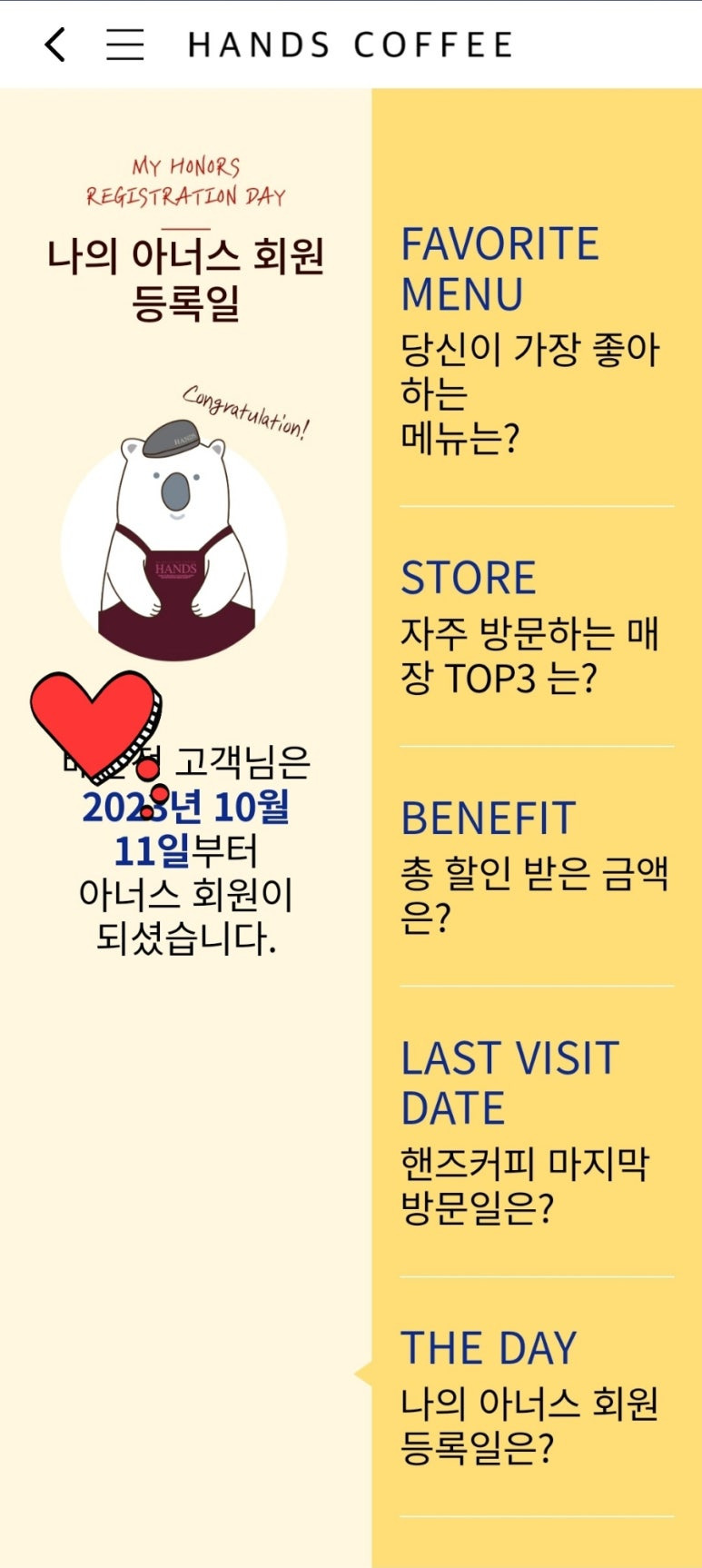 어느덧 저도 핸즈커피 아너스 회원이 되었어요 ♡♡♡