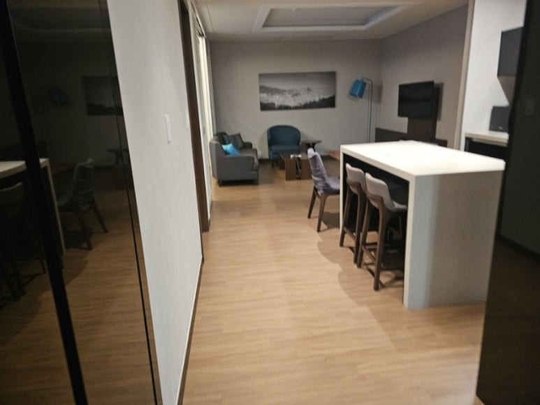 숙소 현관에서 보이는 거실입니다
