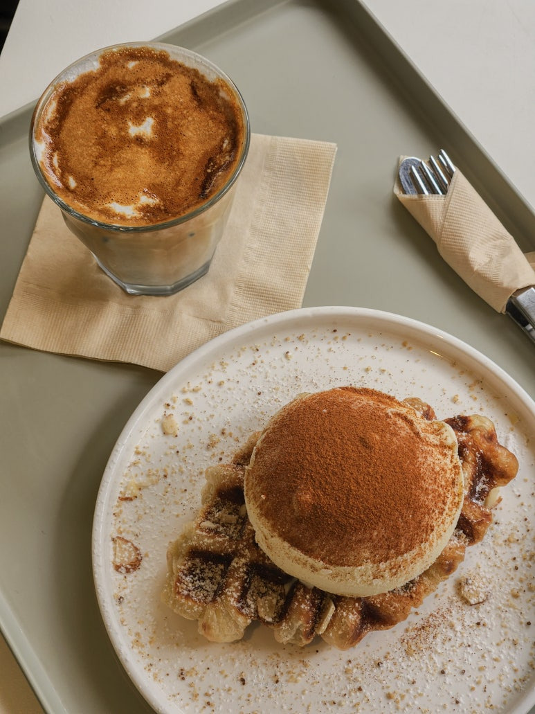 제가 주문한 흑임자라테와 아이스크림 크로플이에요!