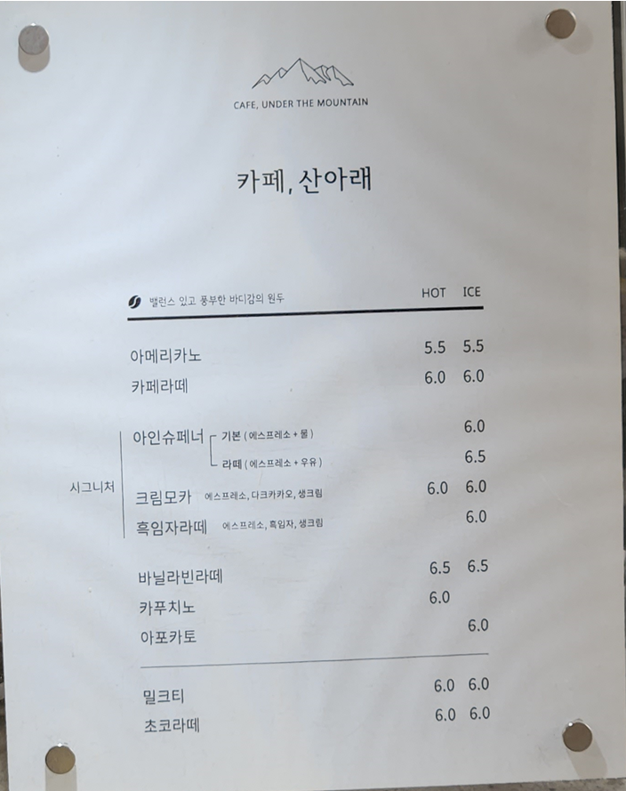 카페 산아래 추천드립니다 :)