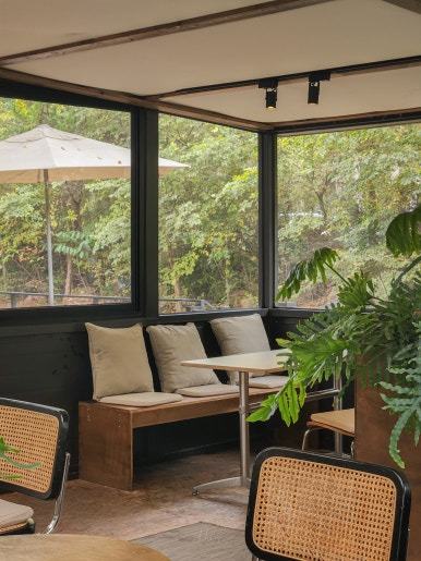 계곡 뷰와 나뭇잎, 그리고 아이스크림 크로플을 먹고 싶다면