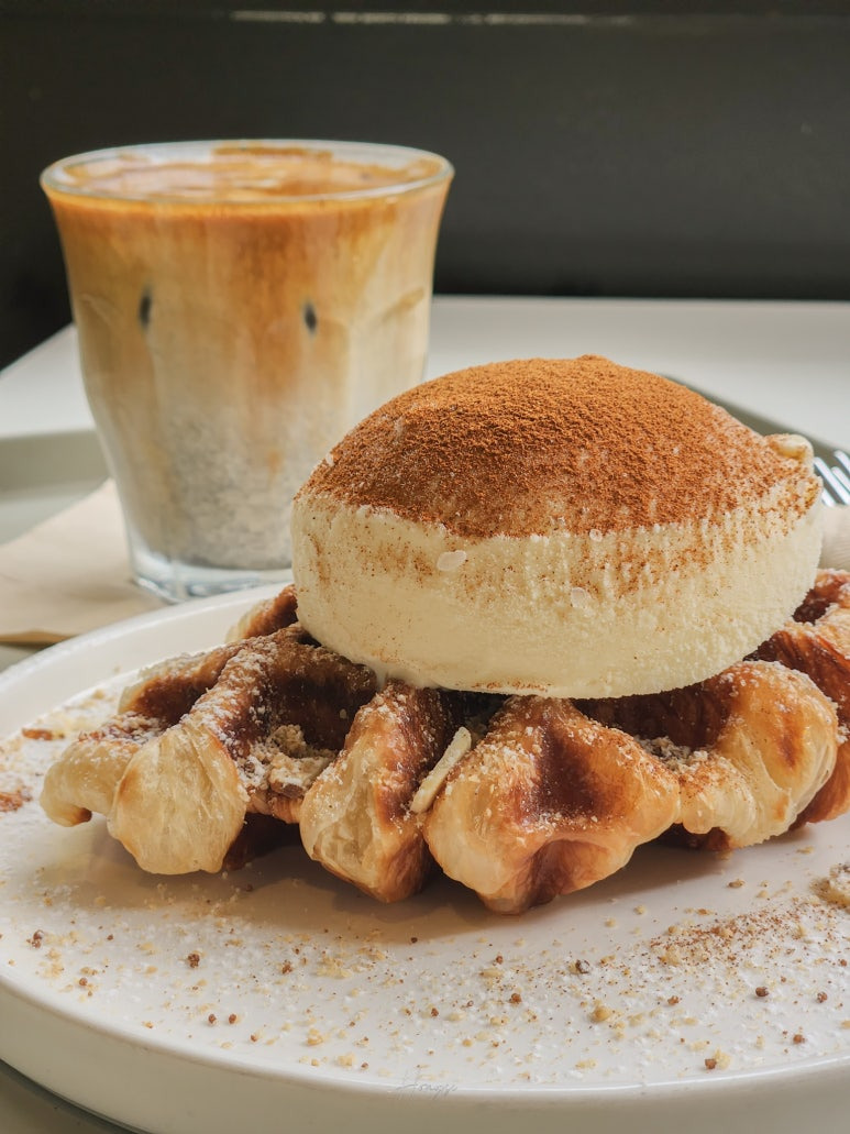 맛있는 아이스크림 크로플을 주문했어요!