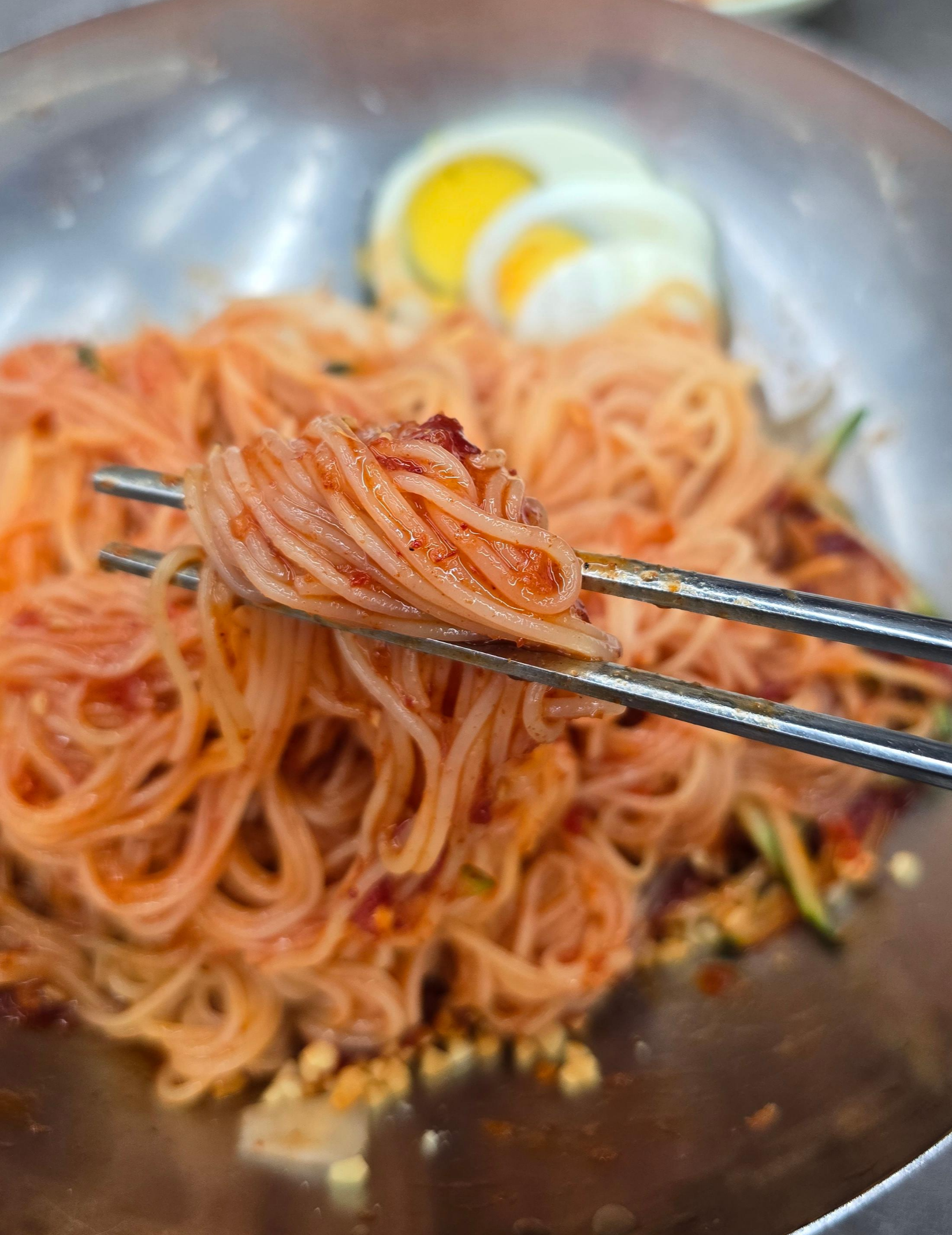 육수는 진하게 우려낸 사골 베이스에 매콤한 양념이 더해져 깔끔하면서도 깊은 맛을 자랑하며, 면은 밀가루와 전분을 적절히 배합해 쫄깃한 식감을 유지합니다.