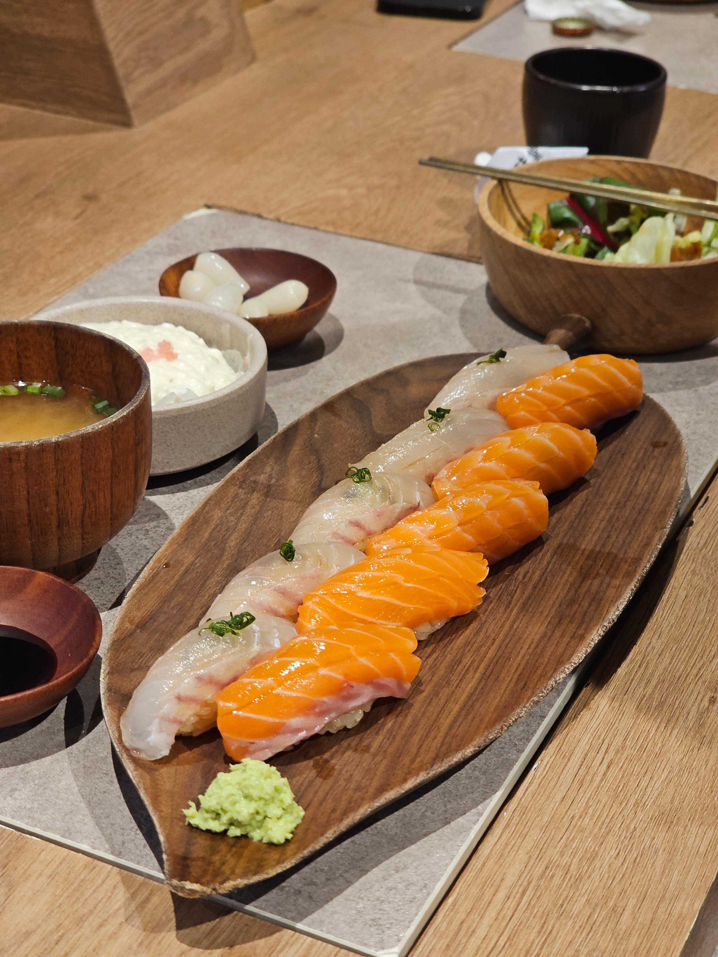 이곳의 초밥은 무엇보다 '재료의 신선도'가 인상 깊습니다. 대표적으로 연어, 광어, 참돔 등 국내산 활어를 사용하며,
