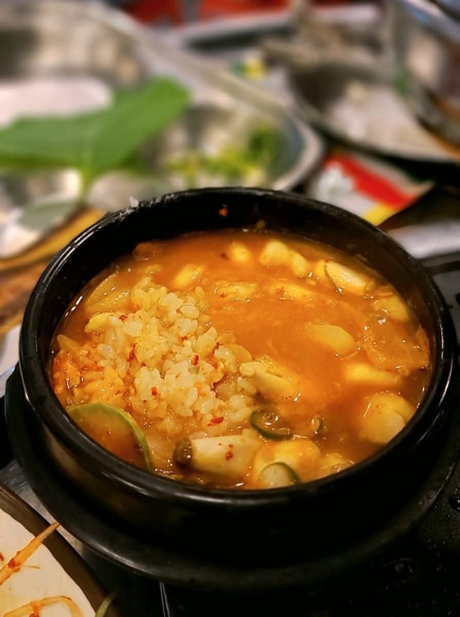 함께 나오는 된장찌개나 계란찜도 맛이 좋아 곁들임 메뉴로 부족함이 없었습니다. 반찬 구성도 깔끔했고, 직원들의 서비스도 친절했습니다. 막창뿐만 아니라 양념 돼지갈비나 소금구이도 판매하는데, 옆 테이블 손님이 먹는 걸 보니 양도 푸짐하고 비주얼도 훌륭하더군요. 막창을 다 먹은 후에는 된장밥을 꼭 추가해서 먹는 걸 추천합니다. 불맛 가득한 볶음밥은 진정한 마무리를 장식해줍니다.