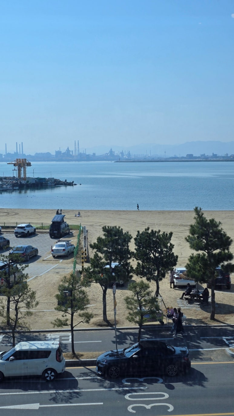 카페에서 커피를 마시며 한참을 바깥 풍경을 감상했어요. 영일대 해수욕장은 포항에서도 유명한 해변이라 그런지 산책하는 사람들도 많고,