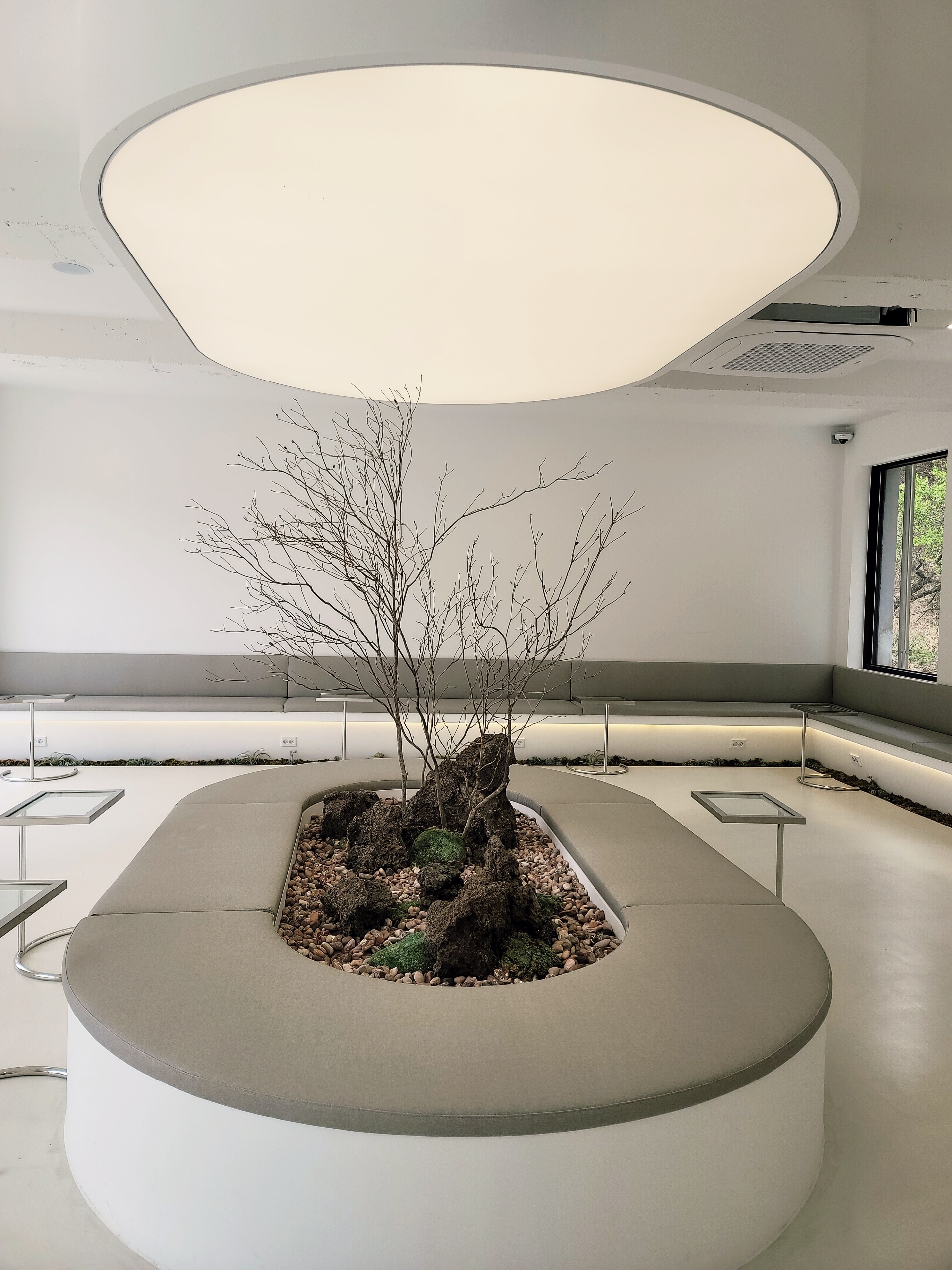 외부의 자연 풍경과 내부 공간이 유기적으로 연결되어 있어, 마치 하나의 거대한 작품 속에 들어온 듯한 느낌을 줍니다.